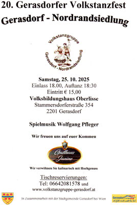 Die Volkstanzgruppe Gerasdorf-Nordrandsiedlung bedankt sich ganz herzlich bei unseren Besuchern, die alle zum Gelingen dieses schönen Festes beigetragen haben.